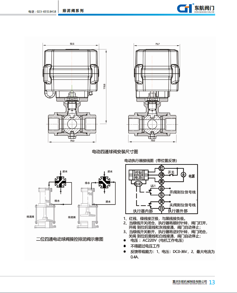 排泥閥用不銹鋼電動動換向閥 帶開關(guān)到位信號反饋